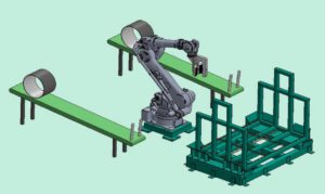 この自動機を用いて、φ300~500までの大型接手を前工程から排出された後に、専用パレットに整列させる工程を自動化しています。