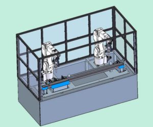 こちらは自動機・ロボット導入/部品加工・調達代行Naviを運営する佐々木精工が設計・製作した「画像検査・溶接加工機」で、長さが1000mm前後の成形部品の外観検査および部品取付の確認及び溶着加工するロボット装置です。