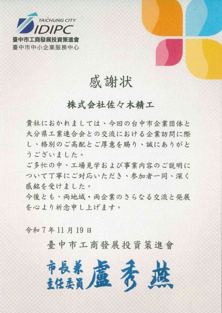 11月19日、当社にて、台中市企業団体と大分県工業連合会の皆さまとの交流会が開催されました!
