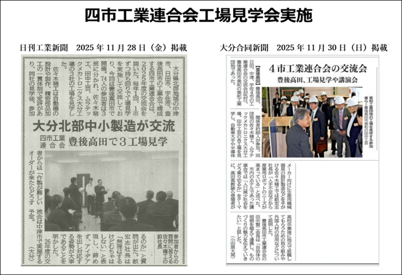 11月25日(火)、中津市、日田市、宇佐市、豊後高田市の工業連合会で構成される四市工業連合会の交流会として 、豊後高田市で工場見学会が開催されました!